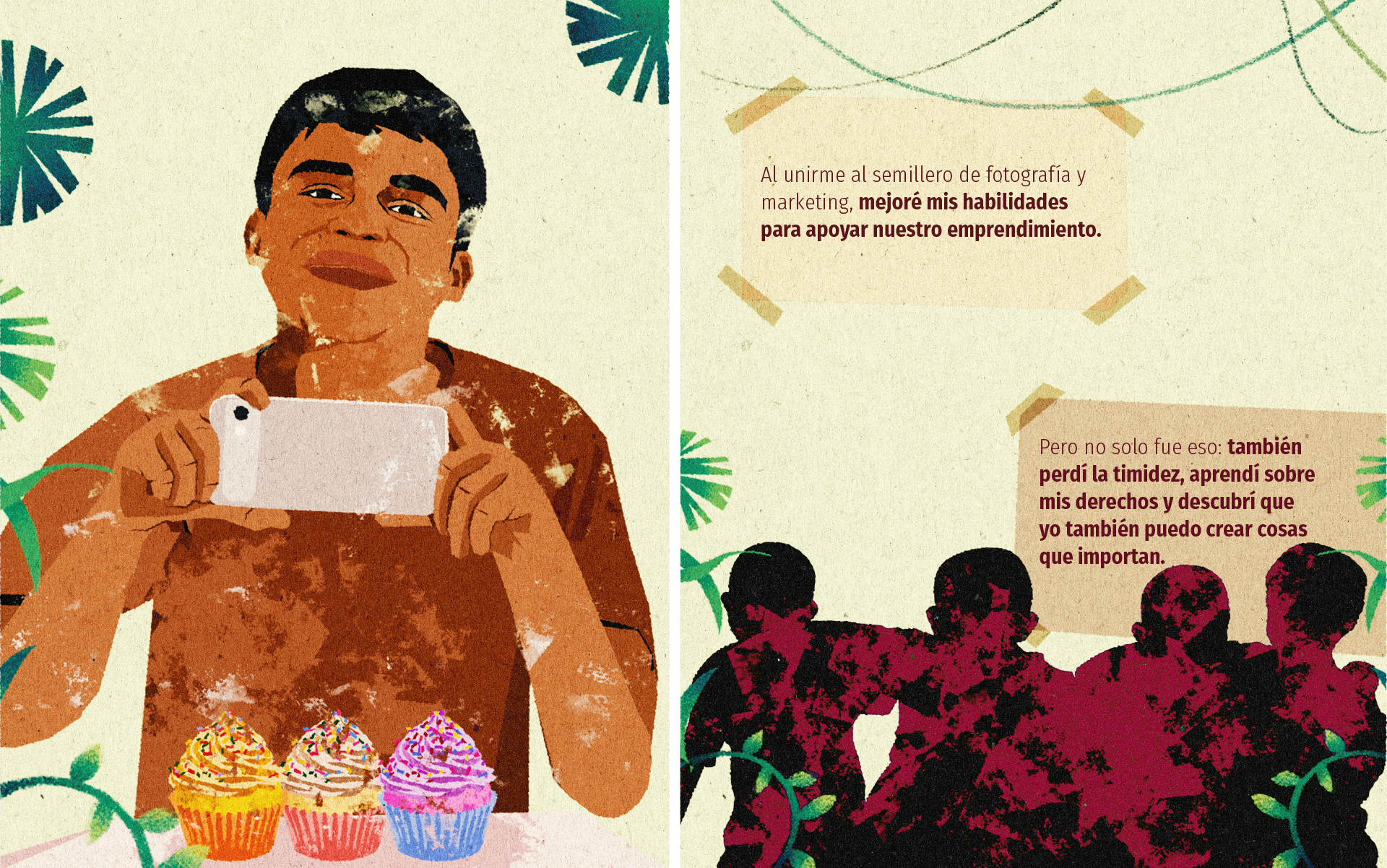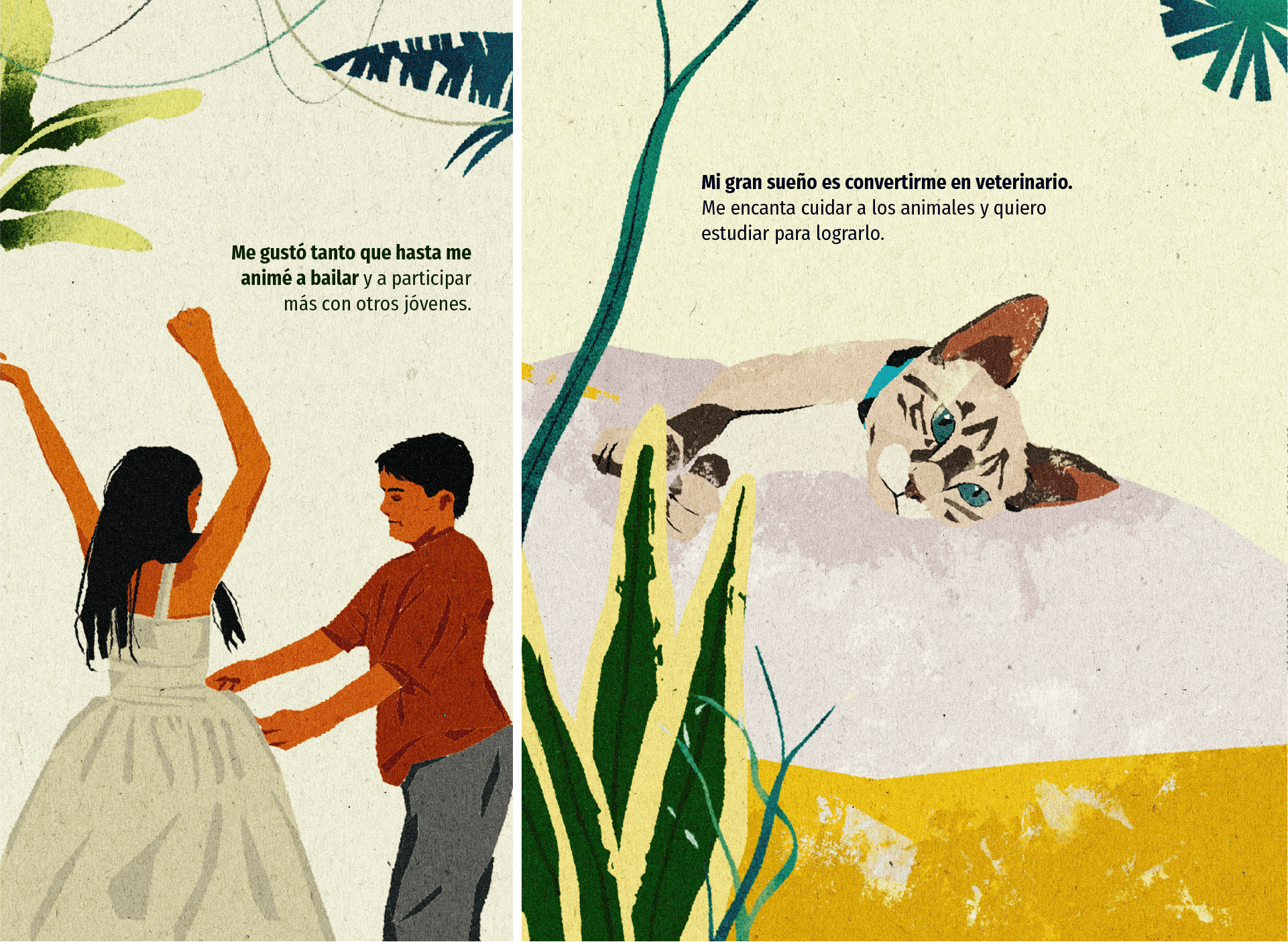 En cada parte, toca el botón gris con el símbolo de “Play” ▶️ para escuchar el audio y conocer más sobre la vida de estos jóvenes.